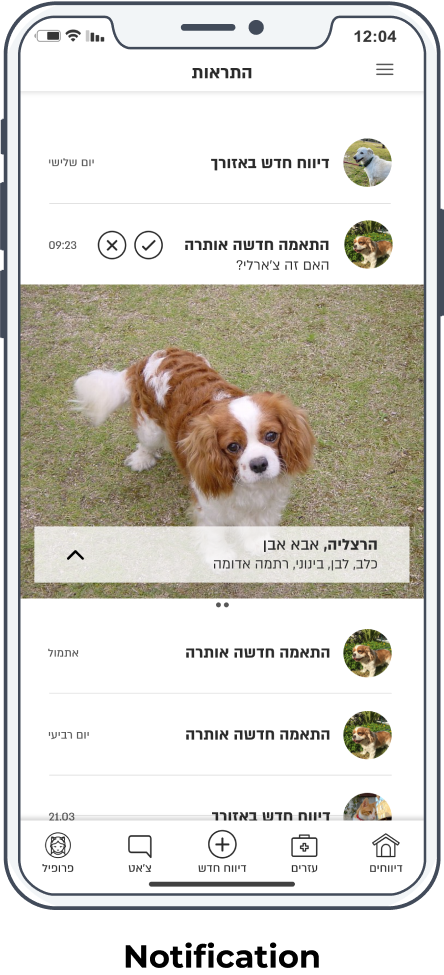 The user will be notified about lost pets near them and receive updates on their own missing pets.